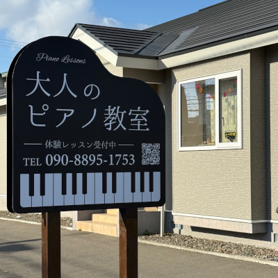 - そこからさらに約32m進むと、前方右側にピアノ教室があります